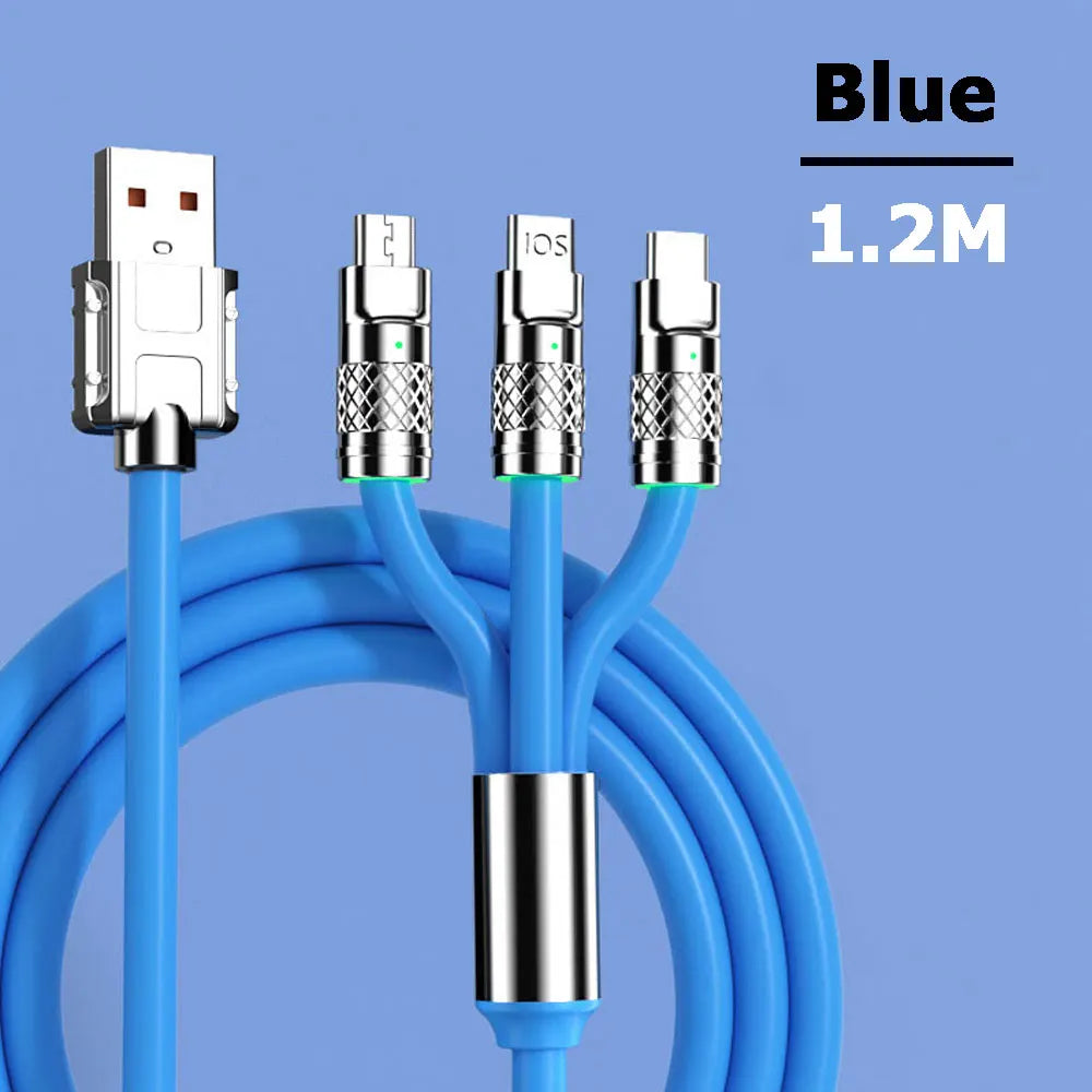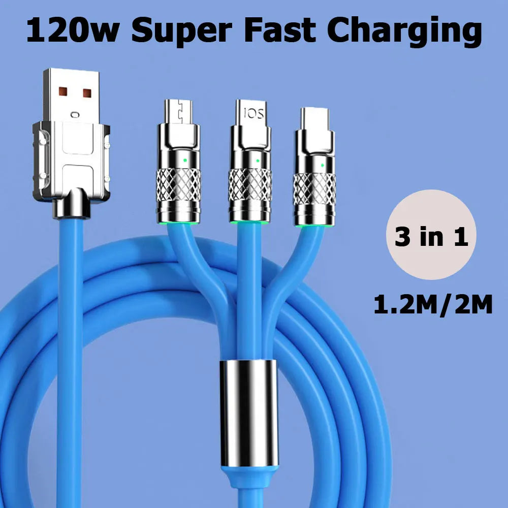 120w 6A Fast Charging Cable 3-in-1 USB To Type C Micro Fast Charger Cord For Iphone Xiaomi Samsung Huawei Phone Tablet Laptop