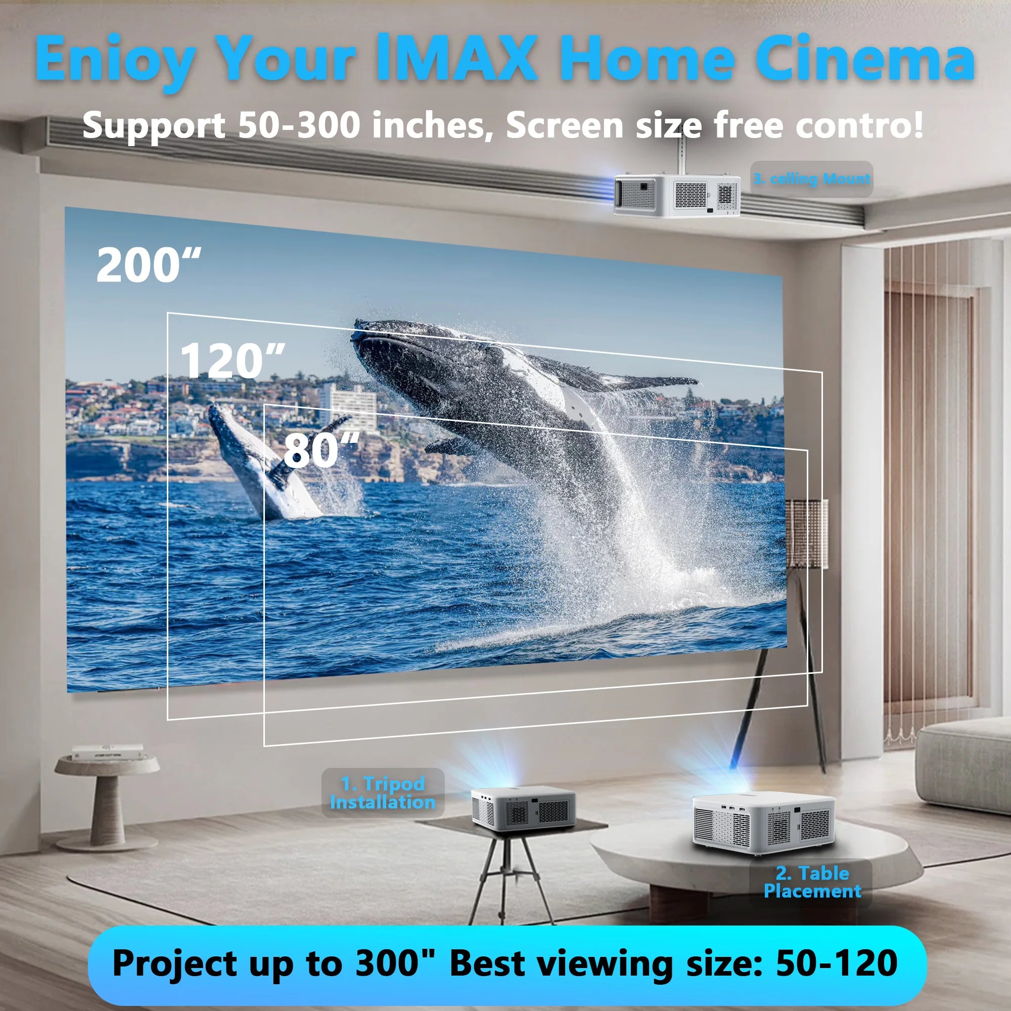 3. 50%-100% Zoom & 300 Inch Large Screen